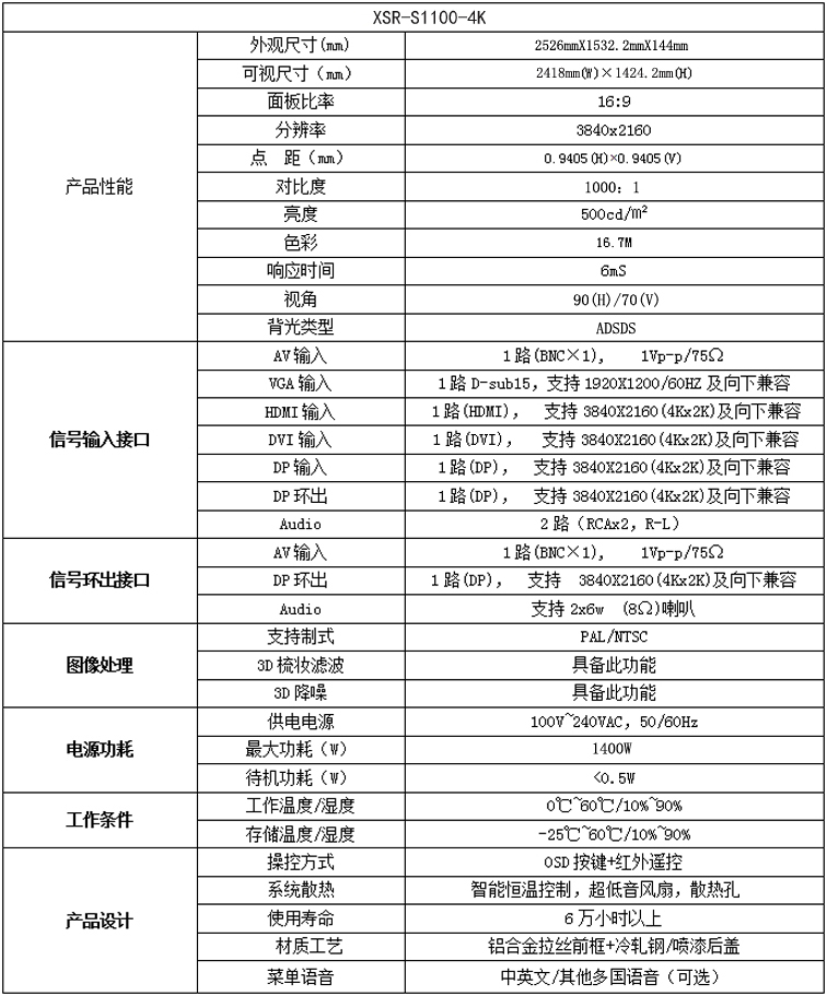 新視銳110寸4倍高清液晶顯示器性能參數