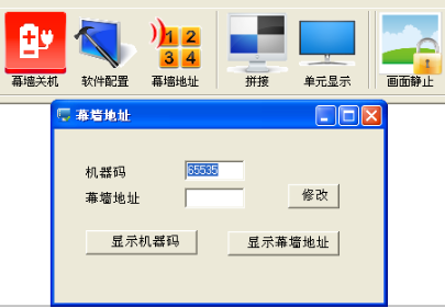 例如以2X2拼接幕為列從左到右數(shù)如圖11中的機器碼15569顯示的是第四塊屏幕,那么就把15569填寫到機器碼框中.幕墻地址框中就改成4,點擊修改,然后關(guān)掉完成再進(jìn)行下一個修改.